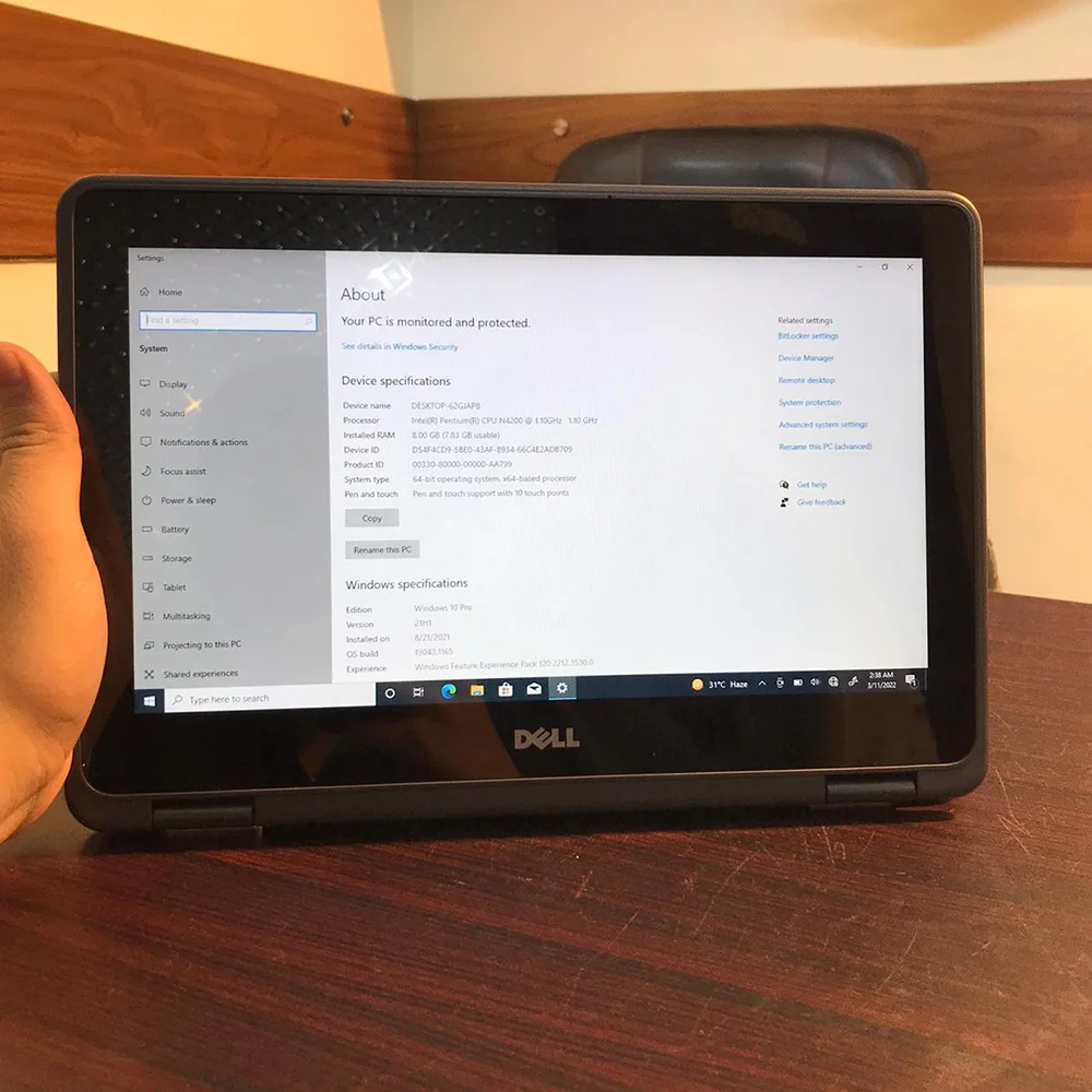 🔹 Key Specs .Model: Dell Inspiron 3189 .Processor: Intel® Celeron® RAM: 4GB DDR3 Storage: 128GB SSD Display: 11.6” HD (1366 × 768) OS: Windows 10 (Upgradeable to Windows 11) Connectivity: USB 3.0, USB 2.0, HDMI, Wi-Fi, Bluetooth, Audio Jack Weight: ~1.45kg